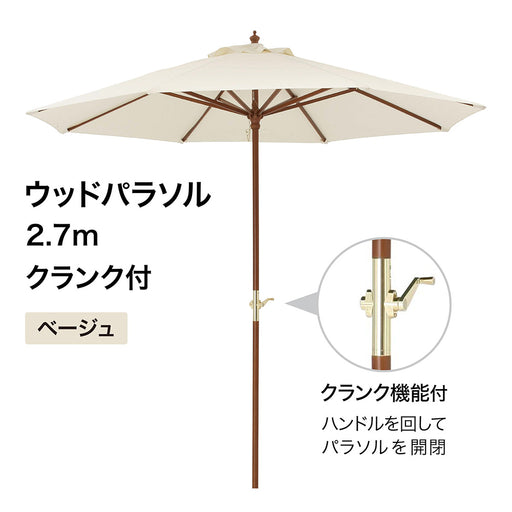 ウッドパラソル 2.7m クランク付