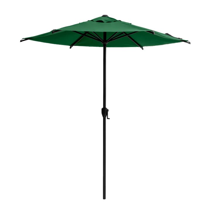 日差しの向きに合わせて傾き調節可能。クランクを回して開閉するおしゃれなパラソル。